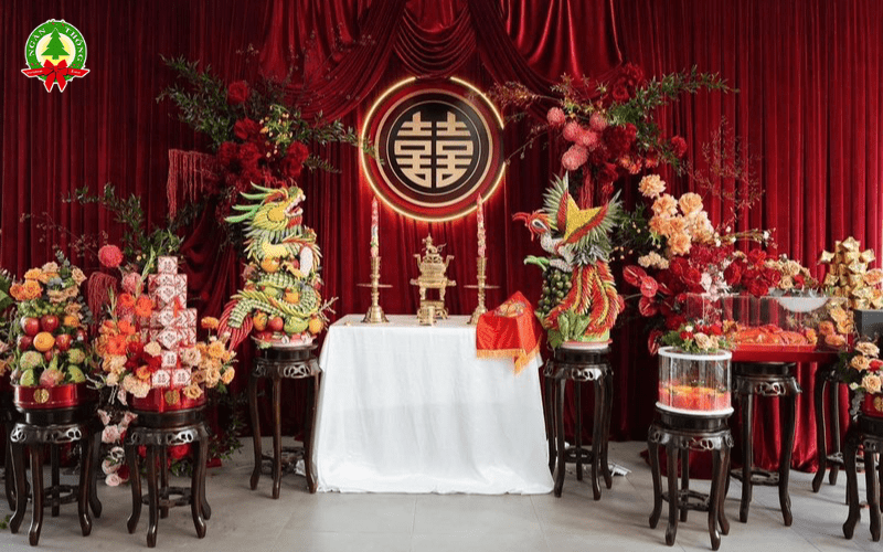 Đây cũng là bối cảnh chính cho những nghi thức quan trọng nhất như lễ dâng hương, trao của hồi môn, tạo nên những bức ảnh kỷ niệm đầy cảm xúc và thiêng liêng. Việc sử dụng dịch vụ trang trí bàn thờ gia tiên ngày cưới chuyên nghiệp sẽ giúp bạn đảm bảo mọi chi tiết đều hài hòa, đúng với lễ nghi truyền thống và thể hiện được gu thẩm mỹ riêng, đồng thời tiết kiệm thời gian quý báu để chuẩn bị cho các công việc quan trọng khác.