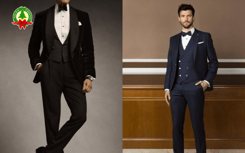 - Nam giới: Tuxedo đen, sơ mi trắng dành riêng cho tuxedo, nơ bướm đen, giày da bóng.